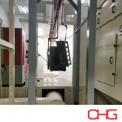 Après durcissement, les pièces sont soumises à un refroidissement par air forcé pour stabiliser le revêtement.